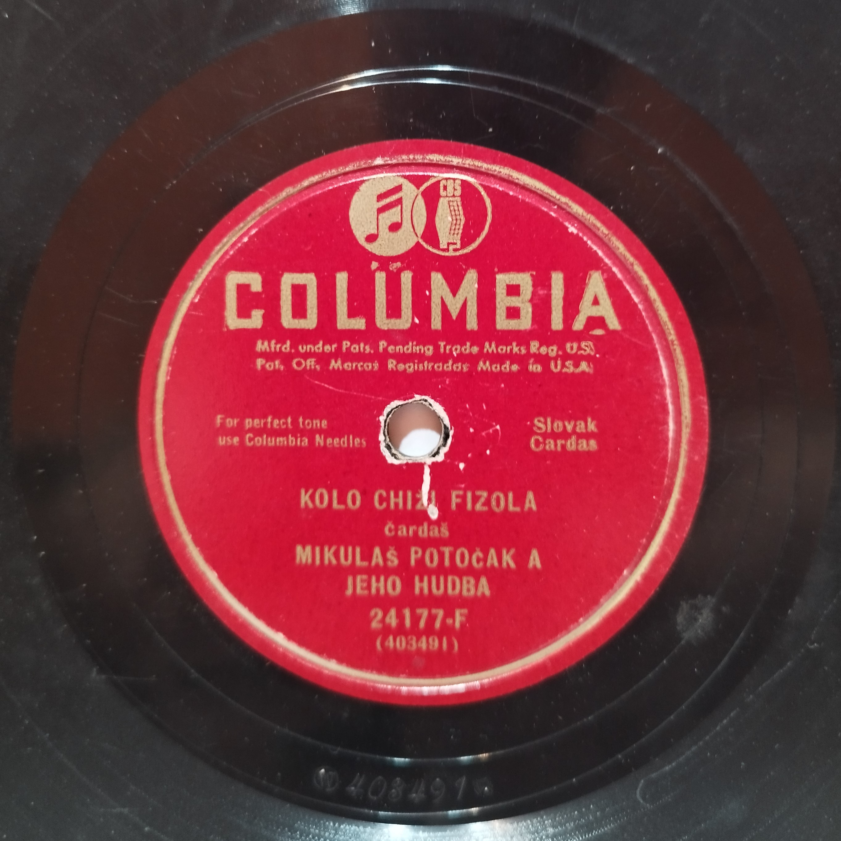 Platňa Columbia 24177-F predstavuje súbor „Mikuláš Potočák a jeho hudba“ s čardášom Kolo chiži fizola a Bratislavskou polkou. Hoci obe nahrávky vznikli už v decembri 1929 v New Yorku pre gramofónovú spoločnosť OKeh, na Columbii sa objavili pravdepodobne až okolo roku 1931. Podľa typu použitej etikety vieme identifikovať, že náš exemplár pochádza z lisovania niekedy z rokov 1947 – 1950, čo len dokazuje dlhodobú popularitu týchto snímok. Sám Potočák (nar. cca 1896, pôvodom lemko-rusínsky muzikant z vtedajšieho Poľska) patril k výrazným postavám komunity v New Jersey a New Yorku, kde pôsobil až do svojej smrti v roku 1974.