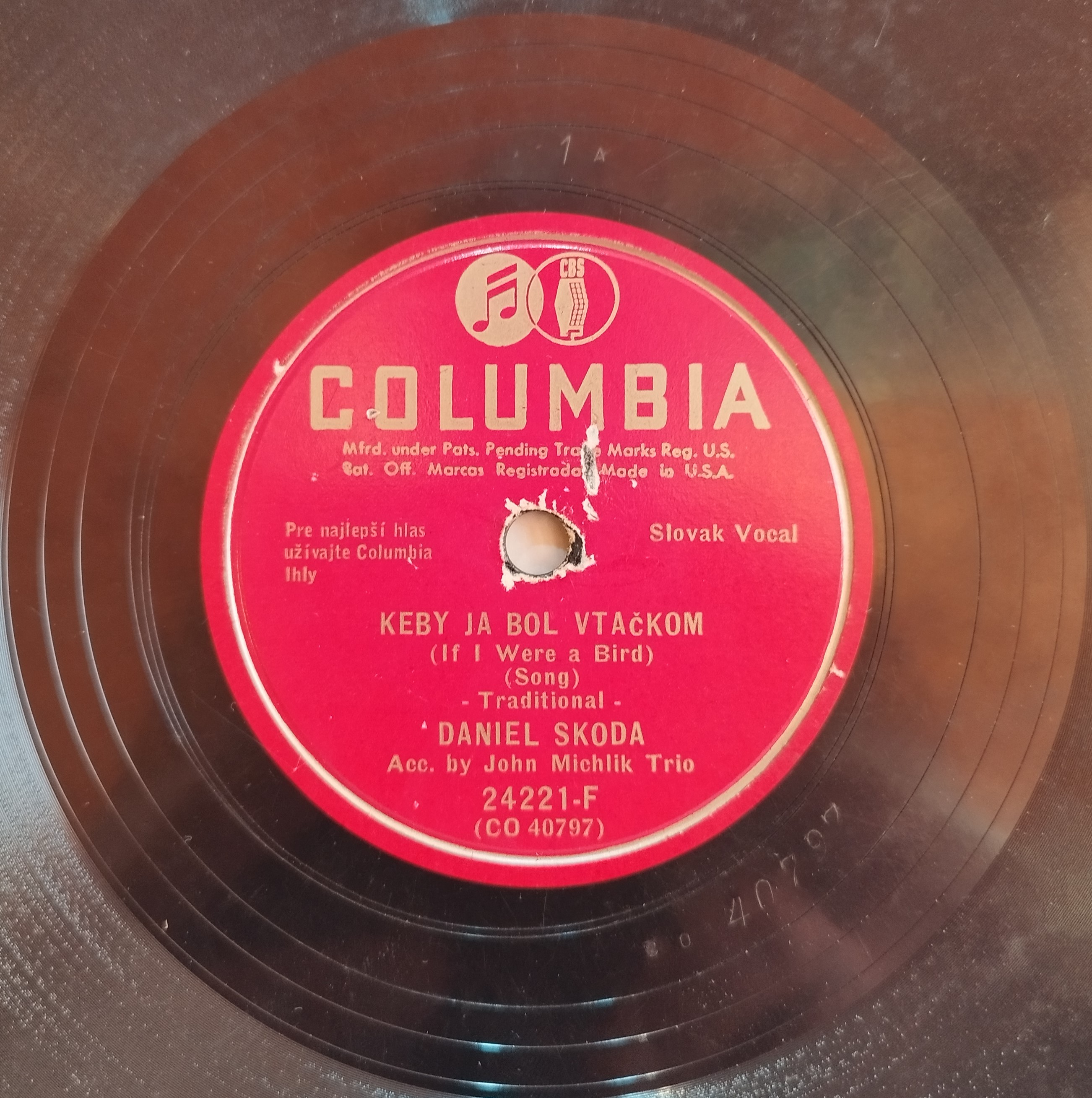 Milí priaznivci, dovoľte nám podeliť sa s vami o vzácne prírastky do nášho zbierkového fondu. Tentoraz ide o štyri šelakové platne značky Columbia (séria 24000-F). Táto špecifická číselná rada bola v Spojených štátoch vyhradená pre slovenské etnické nahrávky a predstavuje podstatný prameň pre štúdium hudobného života našich krajanov v zámorí.
