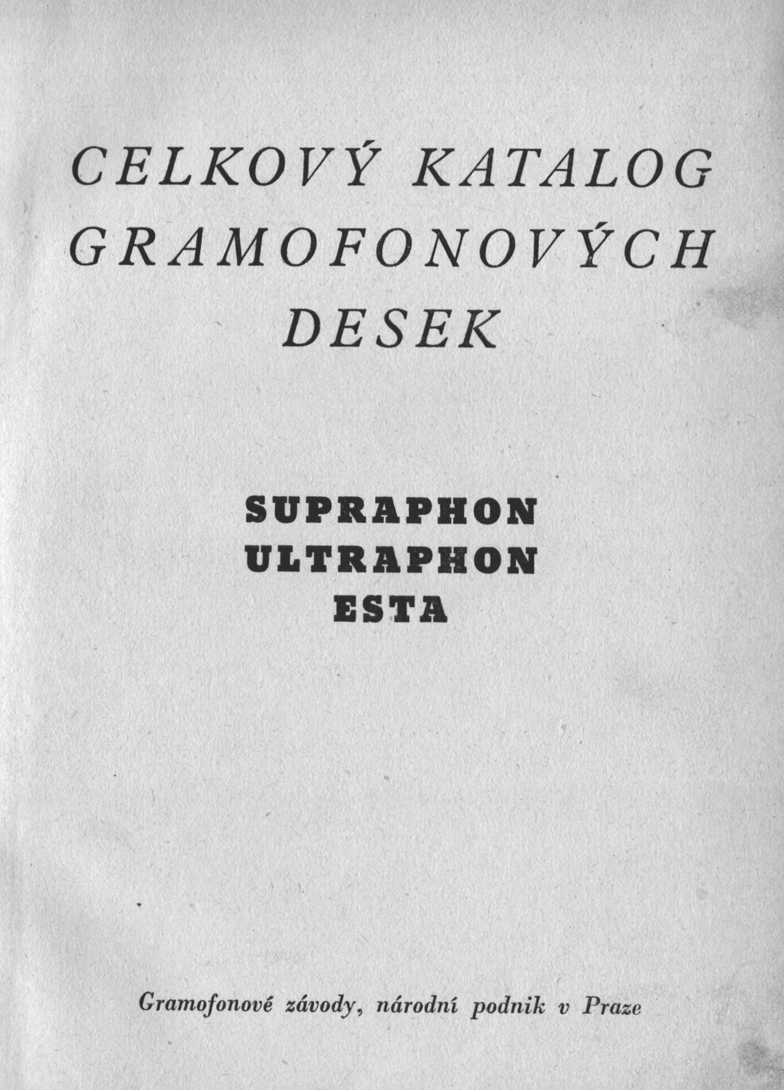 Celkový katalog gramofonových desek Supraphon Ultraphon Esta. Praha: Gramofonové závody, 1948. 185 s.
