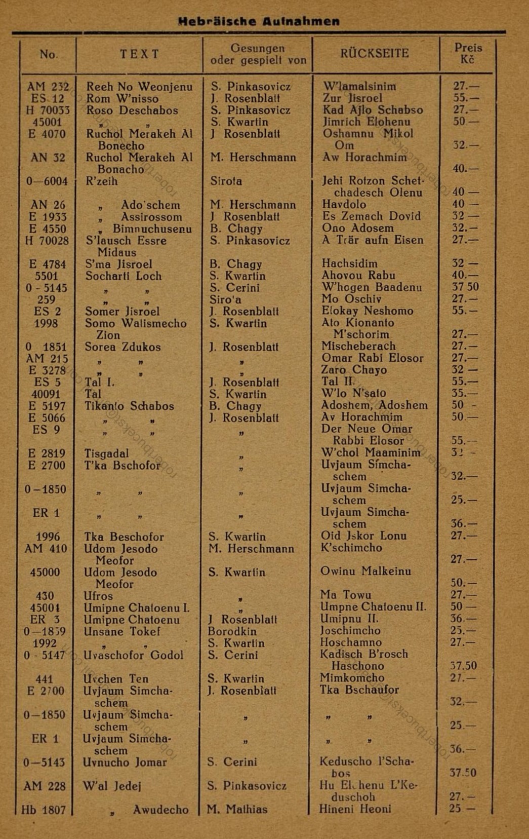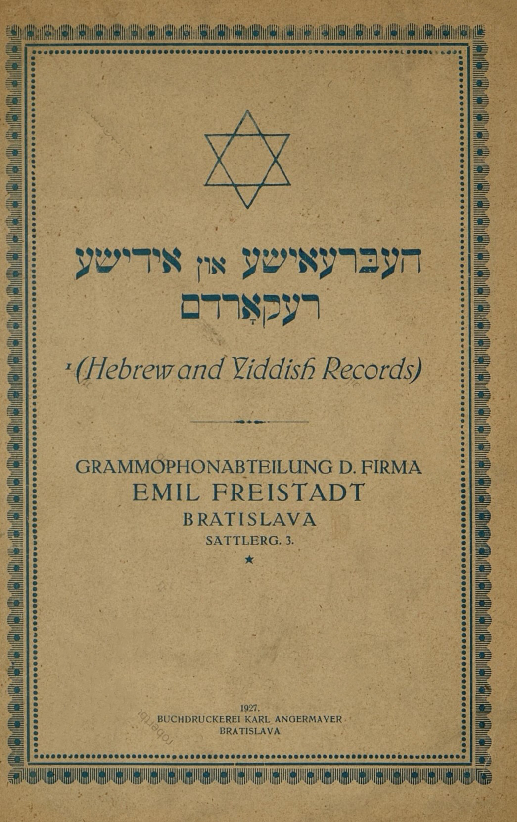 Hebrew and Yiddish Records: grammophonabteilung D.Firma Emil Freistadt Bratislava. Katalóg. Bratislava: Buchdruckerei Karl Angermayer, 1927.