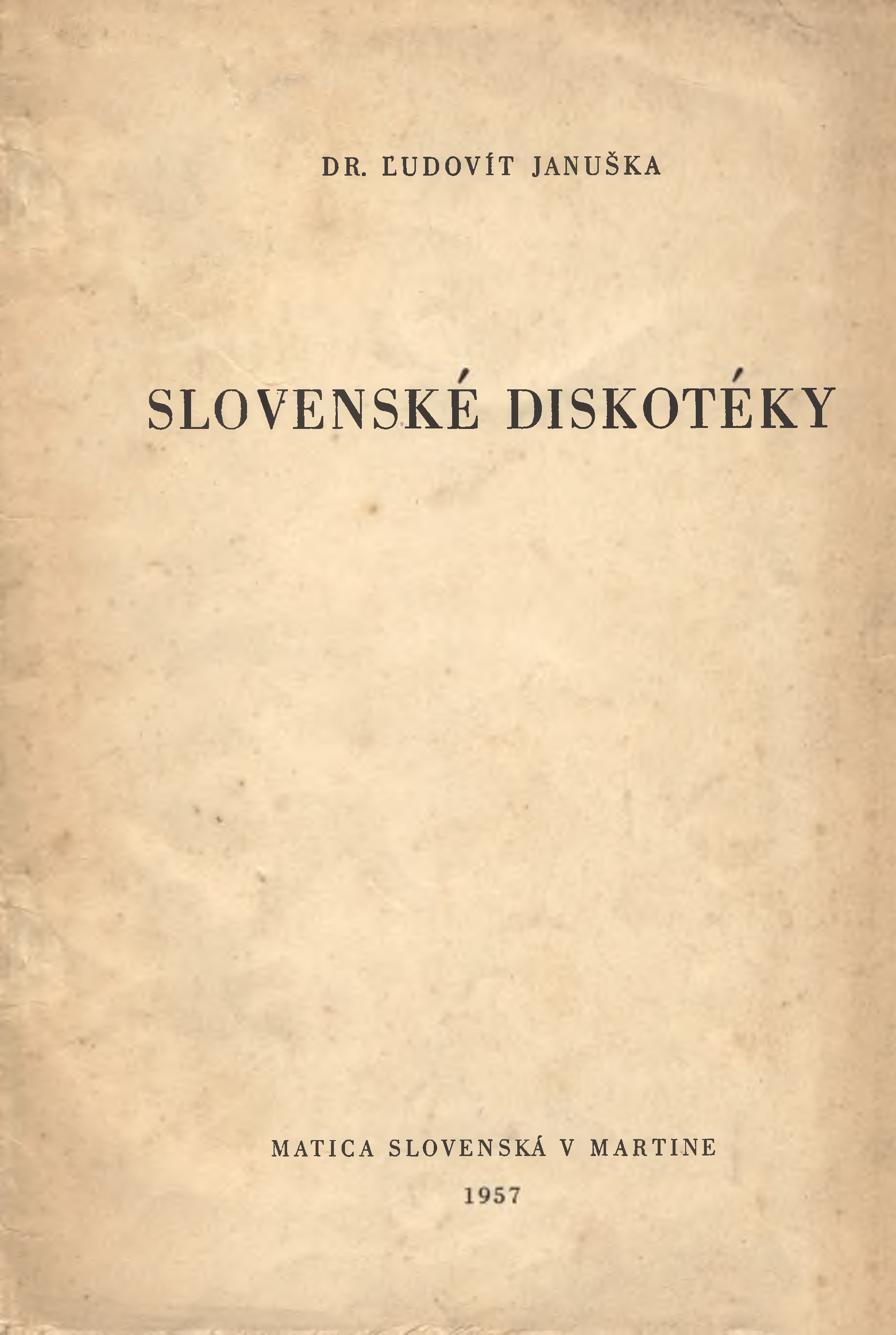 JANUŠKA, Ľudovít. Slovenské diskotéky. Martin: Matica slovenská, 1957. 34 s.